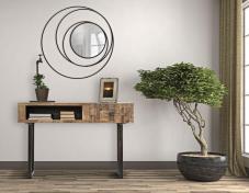 Οι κορνίζες των μεταλλικών καθρεπτών κατασκευάζονται από υψηλής ποιότητας σίδηρο, ατσάλι ή αλουμίνιο, με φινιρίσματα όπως μαύρη ματ βαφή, μπρονζέ πατίνα, χρυσό αντικέ, brushed nickel ή inox. Αυτά τα υλικά προσδίδουν όχι μόνο αντοχή και σταθερότητα, αλλά και μία σύγχρονη, εκλεπτυσμένη αισθητική που δύσκολα περνά απαρατήρητη. Ιδανικοί για χώρους με industrial, minimal, modern ή urban chic ύφος, οι μεταλλικοί καθρέπτες δημιουργούν ένα στιβαρό και καθαρό εικαστικό αποτέλεσμα. Διακόσμηση με Χαρακτήρα – Σε Κάθε Χώρο Οι μεταλλικοί καθρέπτες τοποθετούνται ιδανικά:         •       Στο σαλόνι, ως εστιακό σημείο σε έναν μοντέρνο χώρο.         •       Σε γραφεία και επαγγελματικούς χώρους, προσδίδοντας κύρος και μοντέρνα αισθητική.         •       Σε μπάνια και υπνοδωμάτια, με λεπτά, κομψά πλαίσια που δημιουργούν αίσθηση πολυτέλειας.         •       Στην είσοδο ή το χαλ – για ένα δυναμικό, αλλά και διαχρονικά κομψό καλωσόρισμα.