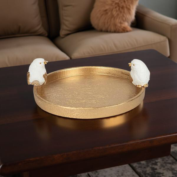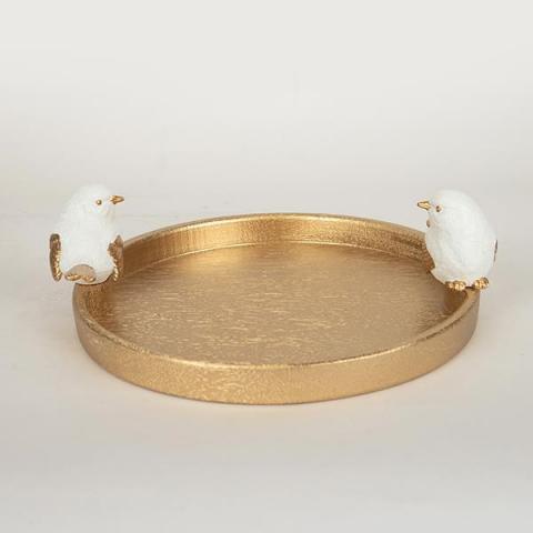 ΔΙΑΚΟΣΜΗΤΙΚΗ ΠΙΑΤΕΛΑ ΜΕ ΠΟΥΛΙ, ΞΥΛΙΝΗ, ΛΕΥΚΗ-ΧΡΥΣΗ, 30.9x28x9.5cm 752-15018 | Crystal