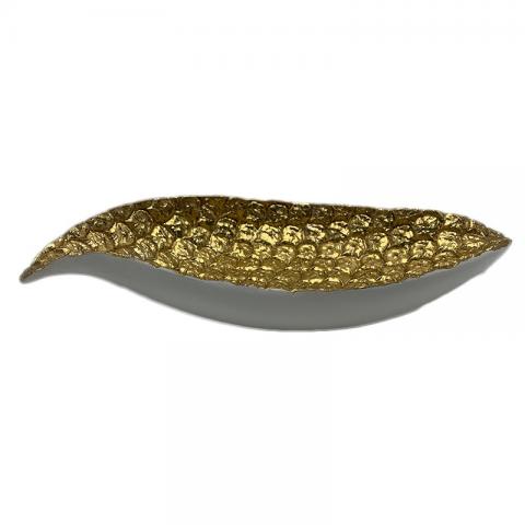 ΠΙΑΤΕΛΑ ΦΥΛΛΟ ΛΕΥΚΟ ΧΡΥΣΟ POLYRESIN ΣΧΕΔΙΟ ΑΝΑΝΑΣ 35Χ17Χ6,5ΕΚ