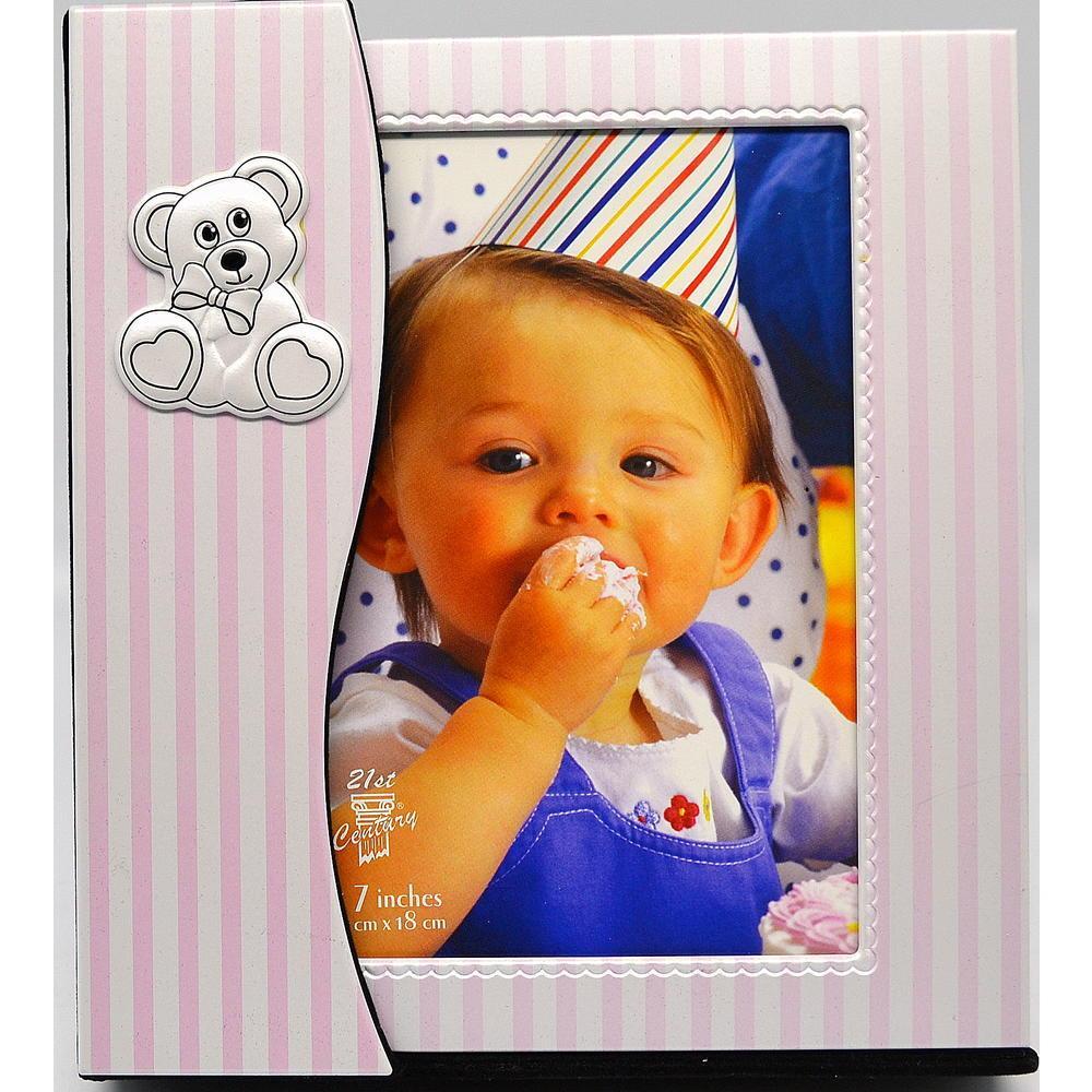 Με θήκη για το άλμπουμ και σταντ, με ροζ και λευκές ρίγες και σχέδιο αρκουδάκι