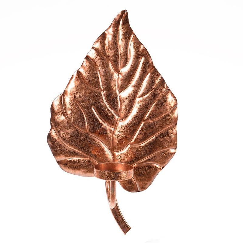 Φύλλο/κηροπήγιο μεταλλικό τοίχου μπρονζέ, σε μέγεθος: 19X9X33 cm