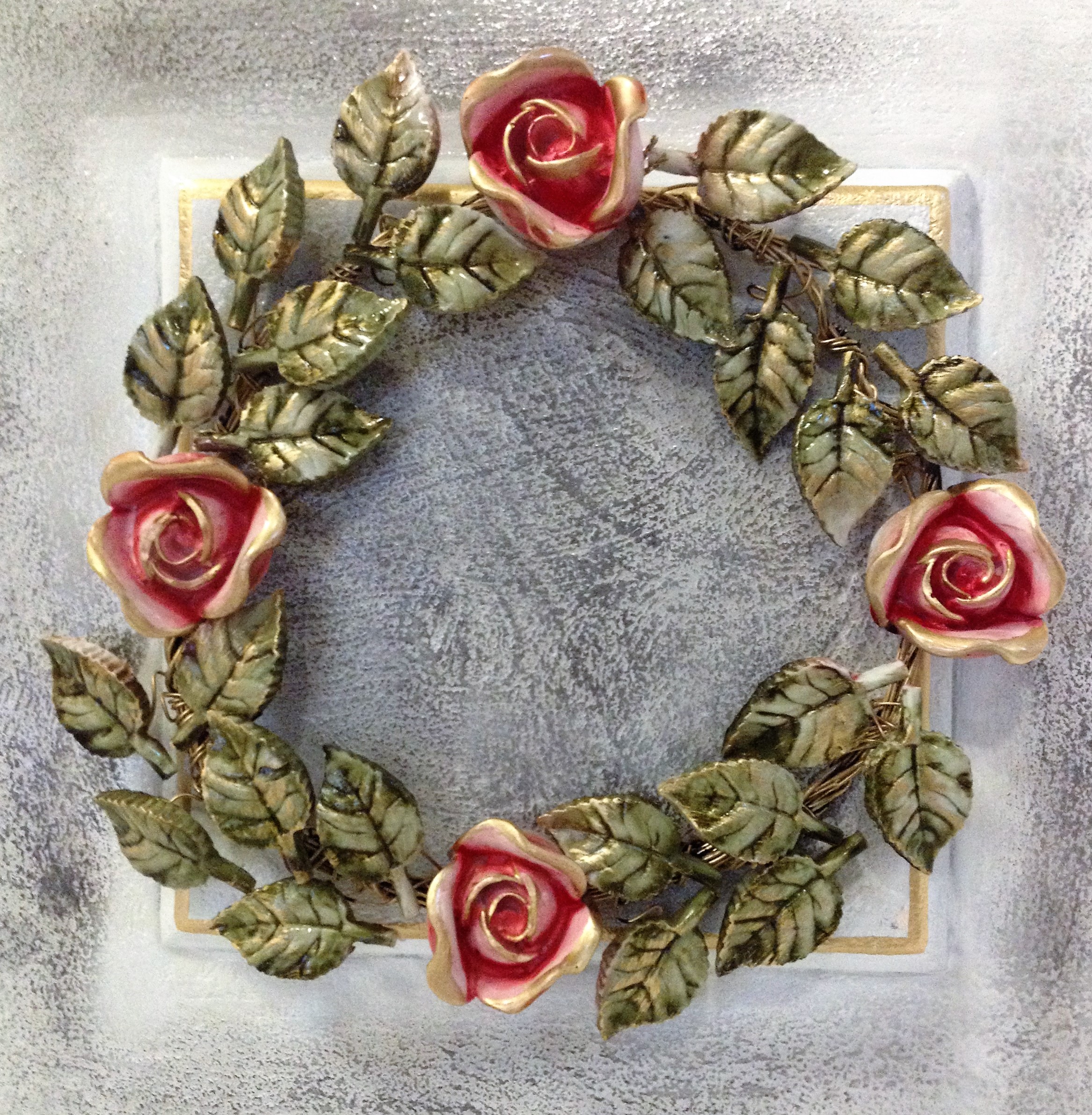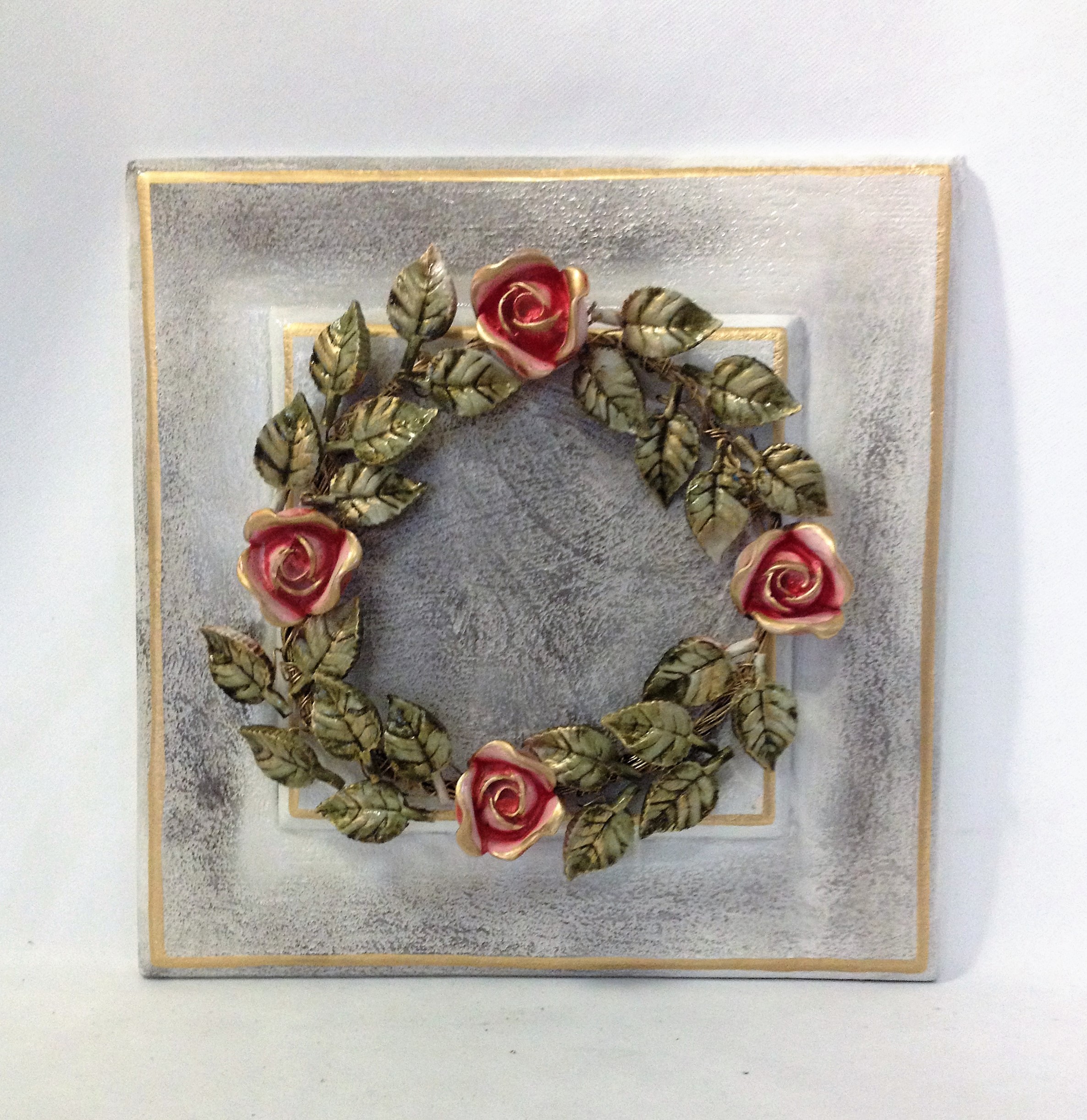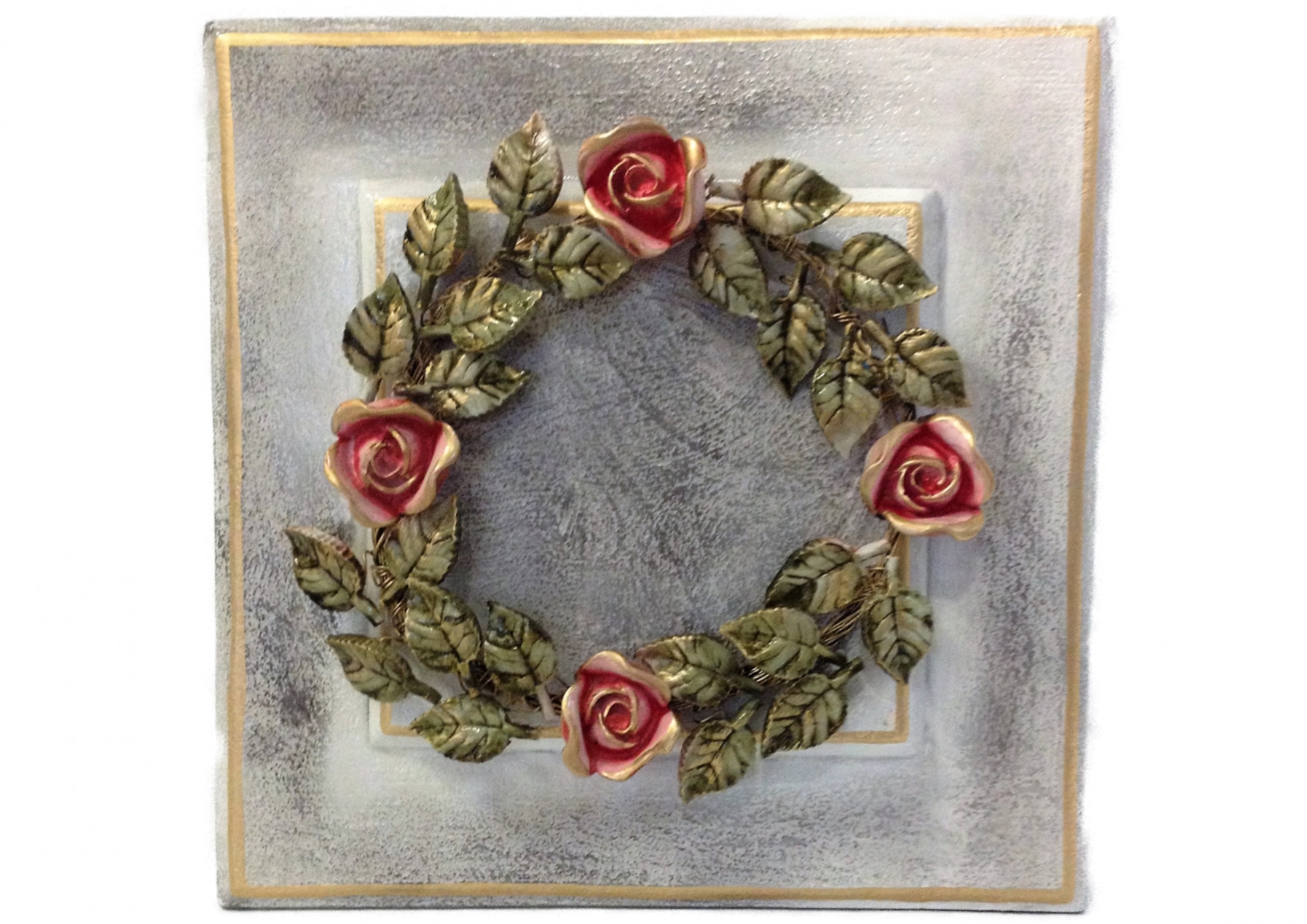 ΧΕΙΡΟΠΟΙΗΤΟ ΔΙΑΚΟΣΜΗΤΙΚΟ ΣΤΕΦΑΝΙ ΤΡΙΑΝΤΑΦΥΛΛΙΑΣ ΛΕΥΚΟ ΑΝΤΙΚΕ/ΠΑΤΙΝΑ/ΧΡΥΣΟ 40Χ40 ΕΚ