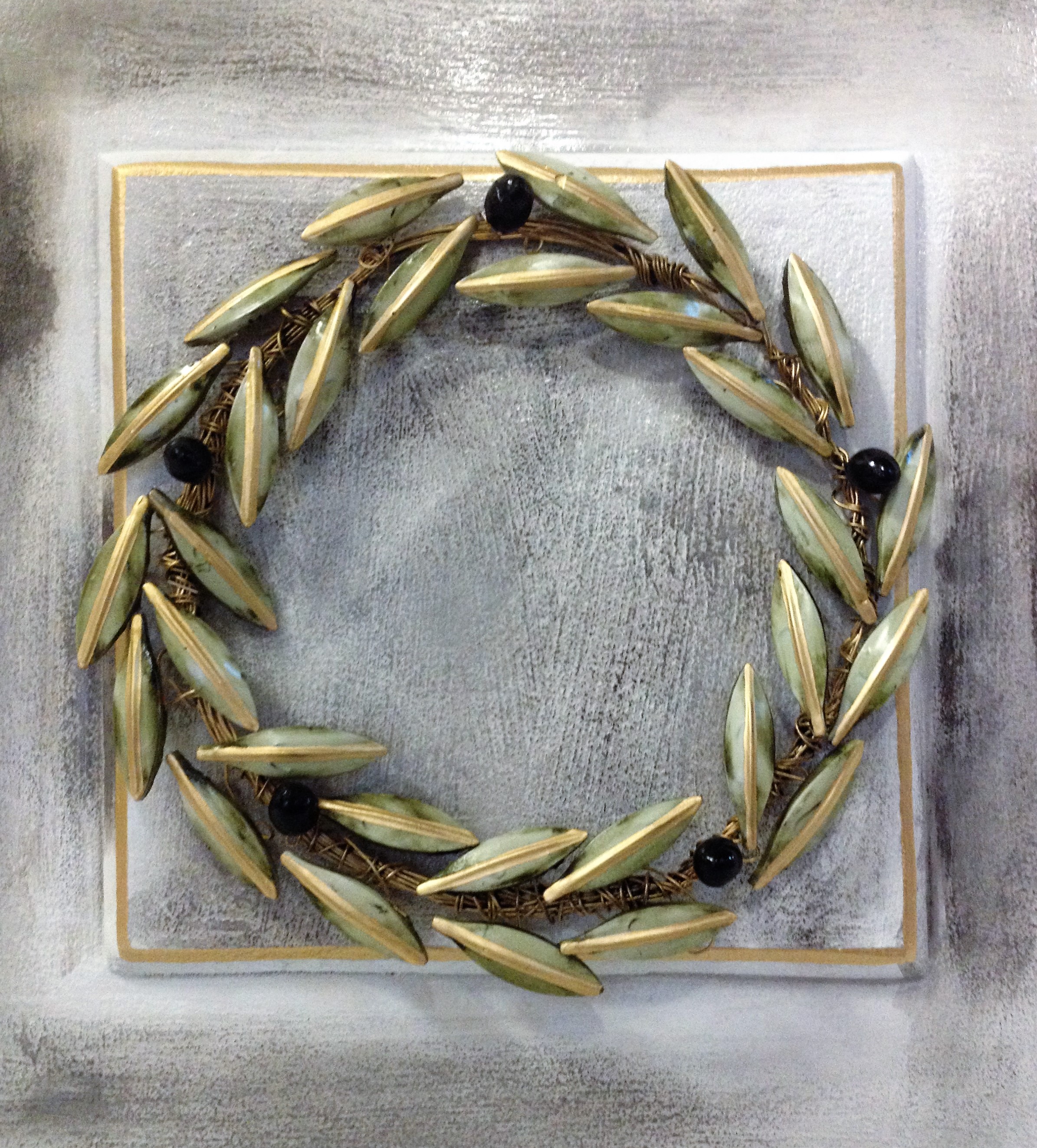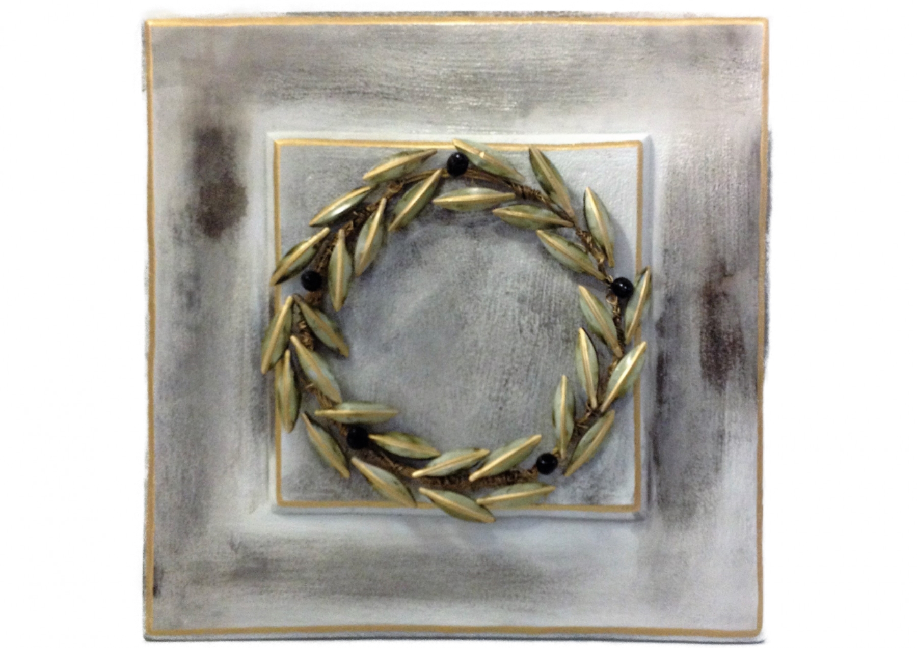 ΧΕΙΡΟΠΟΙΗΤΟ ΔΙΑΚΟΣΜΗΤΙΚΟ ΣΤΕΦΑΝΙ ΕΛΙΑ ΛΕΥΚΟ ΑΝΤΙΚΕ/ΠΑΤΙΝΑ/ΧΡΥΣΟ 50Χ50 ΕΚ