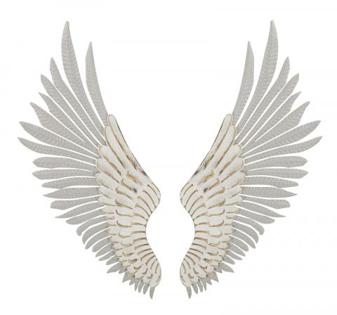 ΣΕΤ 2 ΤΕΜΑΧΙΩΝ ΔΙΑΚΟΣΜΗΤΙΚΑ ΤΟΙΧΟΥ ΦΤΕΡΑ ΑΓΓΕΛΟΥ ΜΕΤΑΛΛΙΚΑ ΜΕ ΞΥΛΟ ΛΕΥΚΟ ΠΑΤΙΝΑ 43,8X2,5X104 ΕΚ | Crystal