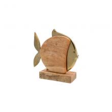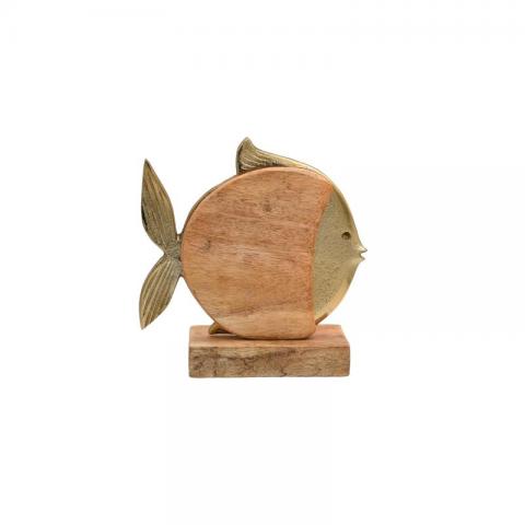 Λεπτομέρειες ΠροϊόντοςΦέρτε μια πινελιά θαλάσσιας γοητείας στο τραπέζι σας.Αυτό το επιτραπέζιο διακοσμητικό αλουμινίου Fish με ξύλινη βάση αποτελεί μια κομψή και διαχρονική επιλογή για κάθε χώρο. Κατασκευασμένο από υψηλής ποιότητας αλουμίνιο και ξύλο, το διακοσμητικό διαθέτει ένα όμορφο ψάρι που προσθέτει μια πινελιά κομψότητας και φινέτσας. Η ανθεκτική ξύλινη βάση εξασφαλίζει σταθερότητα και ισορροπία, ενώ η χρυσή επιφάνεια του αλουμινίου προσδίδει μια αίσθηση πολυτέλειας. Χρώμα:Χρυσό Διαστάσεις:Μήκος:15εκΠλάτος:5εκΎψος:16εκ Επιπρόσθετες λεπτομέρειες:Προέλευση India.Δεν χρειάζεται ιδιαίτερη συντήρηση. Ένα απλό ξεσκόνισμα αρκεί. Αποφύγετε την χρήση χημικών καθαριστικών.Τα χρώματα στην οθόνη μπορεί να διαφέρουν από τα πραγματικά.