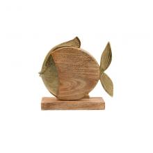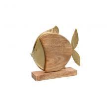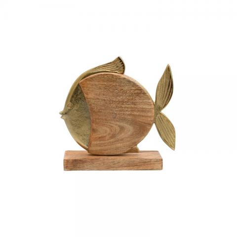 Λεπτομέρειες ΠροϊόντοςΦέρτε μια πινελιά θαλάσσιας γοητείας στο τραπέζι σας.Αυτό το επιτραπέζιο διακοσμητικό αλουμινίου Fish με ξύλινη βάση αποτελεί μια κομψή και διαχρονική επιλογή για κάθε χώρο. Κατασκευασμένο από υψηλής ποιότητας αλουμίνιο και ξύλο, το διακοσμητικό διαθέτει ένα όμορφο ψάρι που προσθέτει μια πινελιά κομψότητας και φινέτσας. Η ανθεκτική ξύλινη βάση εξασφαλίζει σταθερότητα και ισορροπία, ενώ η χρυσή επιφάνεια του αλουμινίου προσδίδει μια αίσθηση πολυτέλειας. Χρώμα:Χρυσό Διαστάσεις:Μήκος:20εκΠλάτος:5εκΎψος:19εκ Επιπρόσθετες λεπτομέρειες:Προέλευση India.Δεν χρειάζεται ιδιαίτερη συντήρηση. Ένα απλό ξεσκόνισμα αρκεί. Αποφύγετε την χρήση χημικών καθαριστικών.Τα χρώματα στην οθόνη μπορεί να διαφέρουν από τα πραγματικά. Συσκευασία: