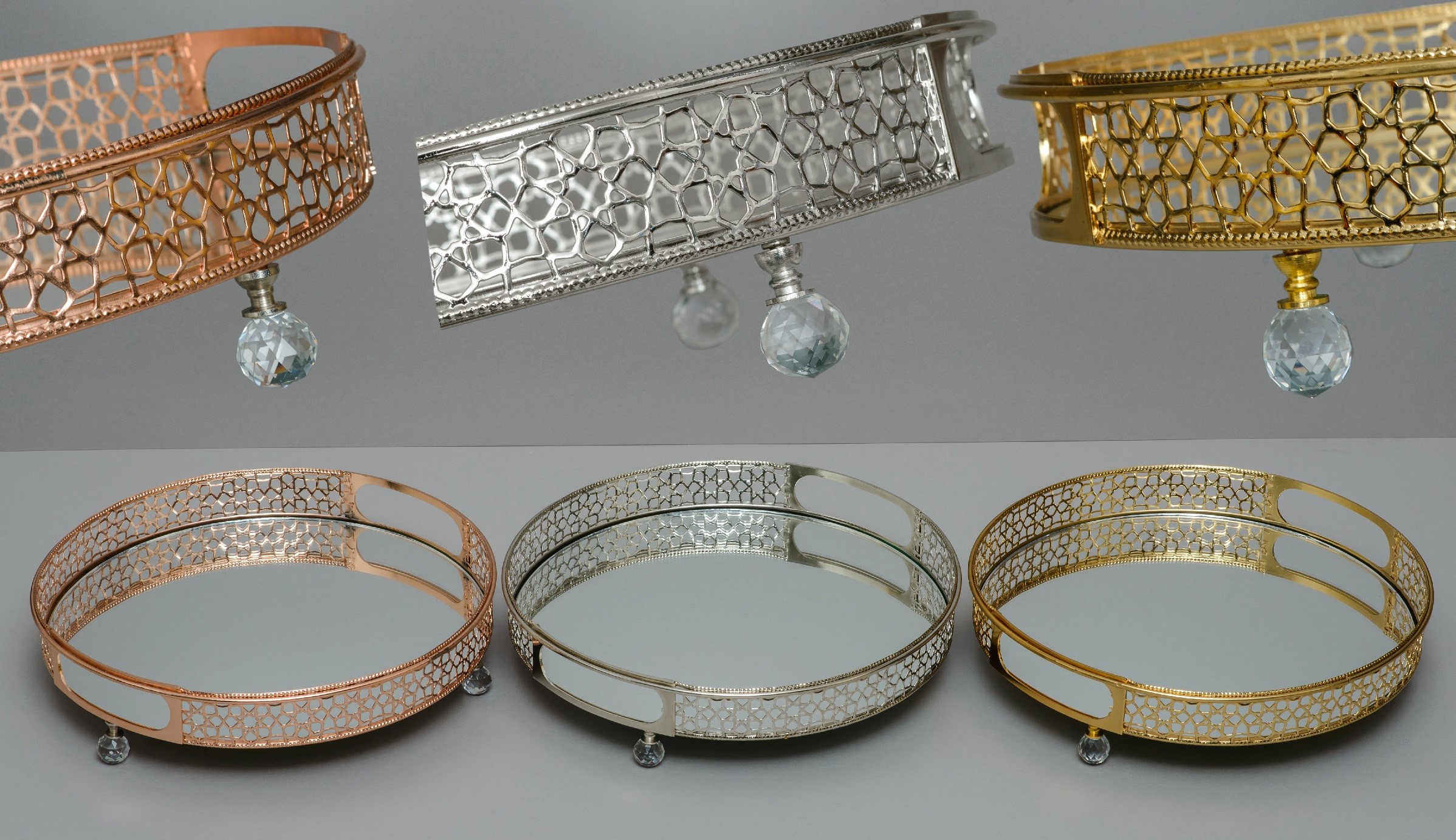 ΔΙΣΚΟΣ ΣΕΡΒΙΡΙΣΜΑΤΟΣ ΜΕ ΚΑΘΡΕΠΤΗ ΧΡΥΣΟΣ ΣΤΡΟΓΓΥΛΟΣ ΚΡΥΣΤΑΛΛΙΝΑ ΠΟΔΙΑ 36X7,5ΕΚ | Crystal
