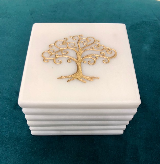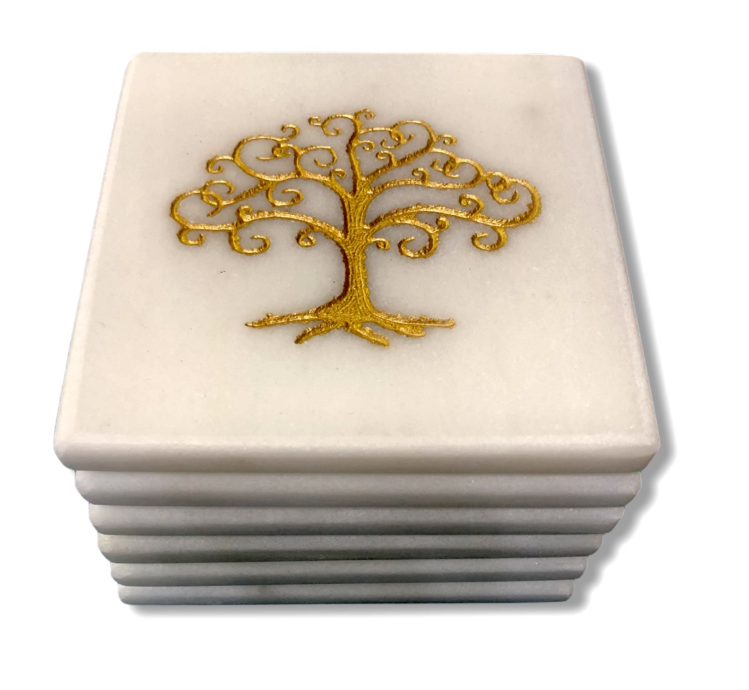 ΣΕΤ 6 ΤΕΜΑΧΙΩΝ ΣΟΥΒΕΡ ΑΠΟ ΜΑΡΜΑΡΟ ΛΕΥΚΟ ΧΑΡΑΓΜΕΝΟ ΧΡΥΣΟ ΔΕΝΤΡΟ ΖΩΗΣ 10Χ10ΕΚ HANDMADE | Crystal