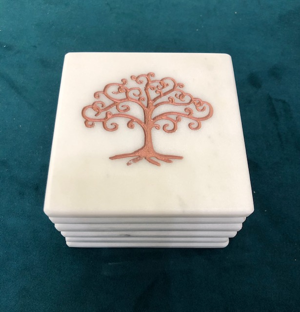 ΣΕΤ 6 ΤΕΜΑΧΙΩΝ ΣΟΥΒΕΡ ΑΠΟ ΜΑΡΜΑΡΟ ΔΙΟΝΥΣΟΥ ΛΕΥΚΟ ΧΑΡΑΓΜΕΝΟ ΡΟΖ ΧΡΥΣΟ ΔΕΝΤΡΟ ΖΩΗΣ 10Χ10ΕΚ HANDMADE