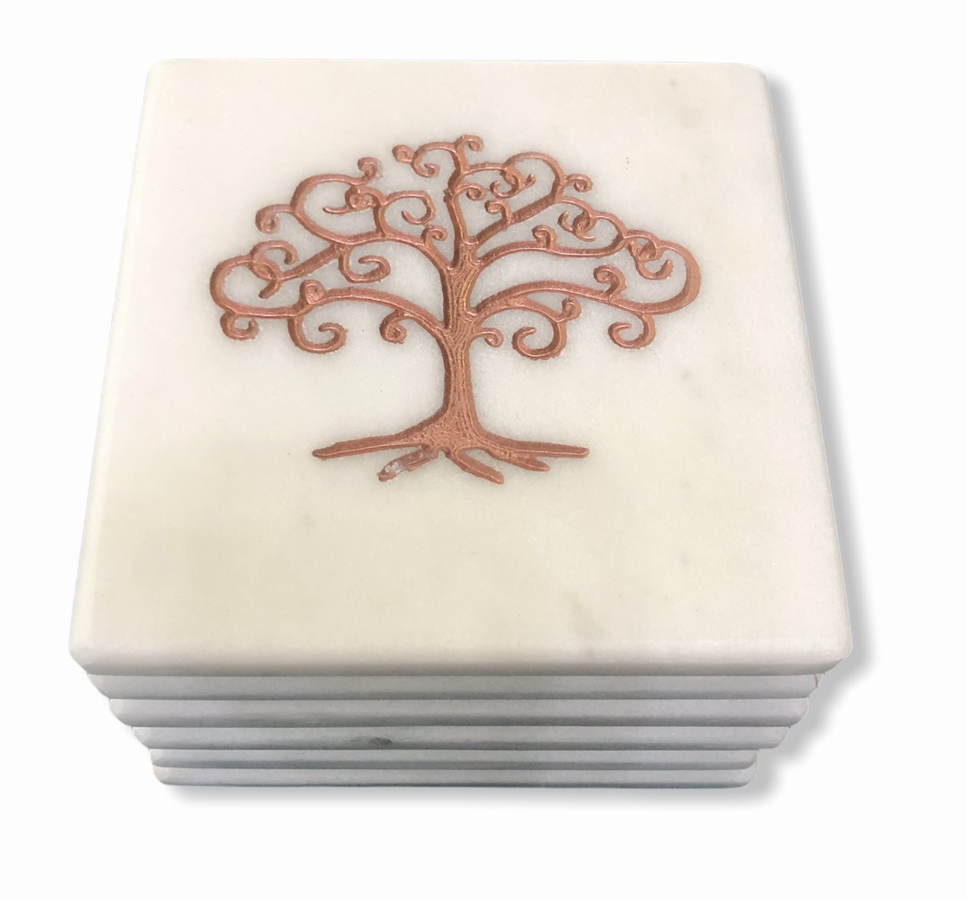 ΣΕΤ 6 ΤΕΜΑΧΙΩΝ ΣΟΥΒΕΡ ΜΑΡΜΑΡΙΝΟ ΛΕΥΚΟ ΧΑΡΑΓΜΕΝΟ ΡΟΖΧΡΥΣΟ ΔΕΝΤΡΟ ΖΩΗΣ 10Χ10ΕΚ HANDMADE | Crystal