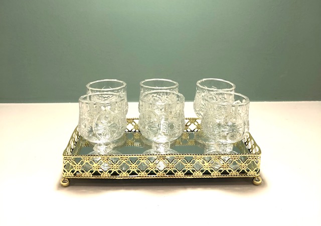 ΣΕΤ 7 ΤΕΜΑΧΙΩΝ ΠΟΤΗΡΙΑ ΛΙΚΕΡ VINTAGE ΜΕ ΜΕΤΑΛΛΙΚΟ ΕΠΙΧΡΥΣΟ ΔΙΣΚΟ ΜΕ ΚΑΘΡΕΠΤΗ 24Χ12,5Χ4ΕΚ