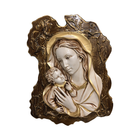 ΧΕΙΡΟΠΟΙΗΤΗ ΕΠΙΤΟΙΧΙA ΜΑΝΤΟΝΑ ΕΙΚΟΝΑ ΕΚΡΟΥ ΧΡΥΣΟ ΑΝΑΓΛΥΦΟ 37Χ28ΕΚ POLYRESIN | Crystal