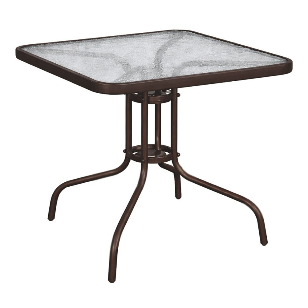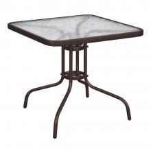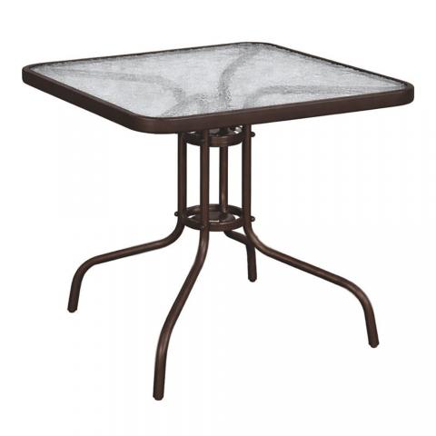Τραπέζι τετράγωνο εξωτερικού χώρου με σκούρο καφέ ματ μεταλλικό σκελετό, σχεδιασμένο για αντοχή και σταθερότητα. Η επιφάνειά του είναι από γυαλί tempered 5mm με σχέδιο water wave, που προσφέρει ιδιαίτερη αισθητική και αυξημένη ανθεκτικότητα. Τα πόδια κατασκευάζονται από σωλήνα διαμέτρου 24Φx0,9mm, εξασφαλίζοντας στιβαρή κατασκευή και ασφαλή στήριξη. Ιδανικό για χρήση σε μπαλκόνι, κήπο ή βεράντα.