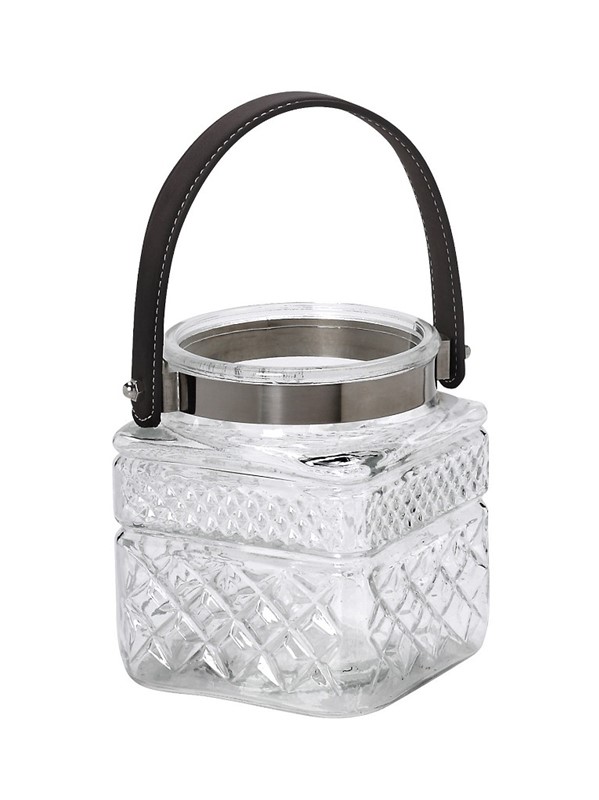 Φανάρι διάφανο τετράγωνο με δερμ λαβή 13 cm | Crystal