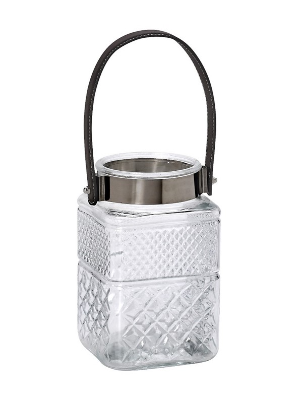 Φανάρι διάφανο τετράγωνο με δερμ λαβή 19 cm | Crystal