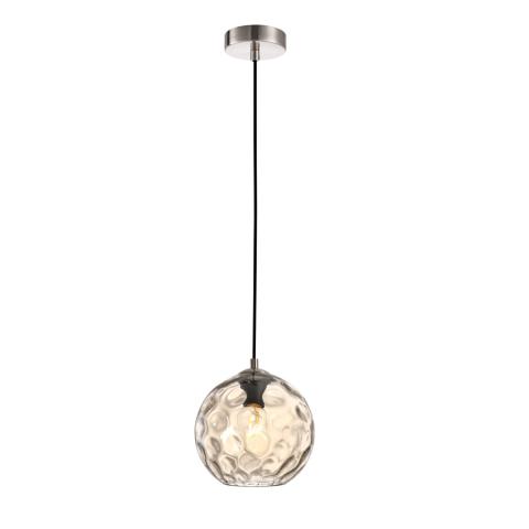 Μονόφωτο-κρεμαστό φωτιστικό κατασκευασμένο από χειροποίητο γυαλί και μεταλλική βάση σε νίκελ ματ.Ύψος: 120 εκ. Διάμετρος γυαλιού: 20 εκ.Λαμπτήρες: 1 τεμ. Τύπος Λαμπτήρα:E27 Watt:60