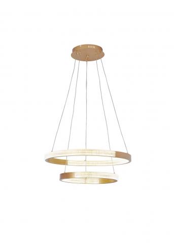 Κρεμαστό  πολύφωτο κατασκευασμένο από αλουμίνιο και μέταλλο σε χρυσό ματ χρώμα και ακρυλικό . Με δυνατότητα εναλλαγής θερμοκρασίας φωτισμού(3000k-6000k) , dimmer , τηλεκοντρόλ και night mode.Ύψος: 100 εκ. Διάμετρος: 61 εκ.Τύπος Λαμπτήρα: LED SMD Watt: 60w 3000k , 60w 6000k , 100w 4000k
