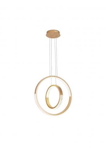 Κρεμαστό  πολύφωτο κατασκευασμένο από αλουμίνιο και μέταλλο σε χρυσό ματ χρώμα και ακρυλικό . Με δυνατότητα εναλλαγής θερμοκρασίας φωτισμού(3000k-6000k) , dimmer , τηλεκοντρόλ και night mode.Ύψος: 120 εκ. Διάμετρος: 50 εκ.Τύπος Λαμπτήρα: LED SMD Watt: 49w 3000k , 49w 6000k , 90w 4000k