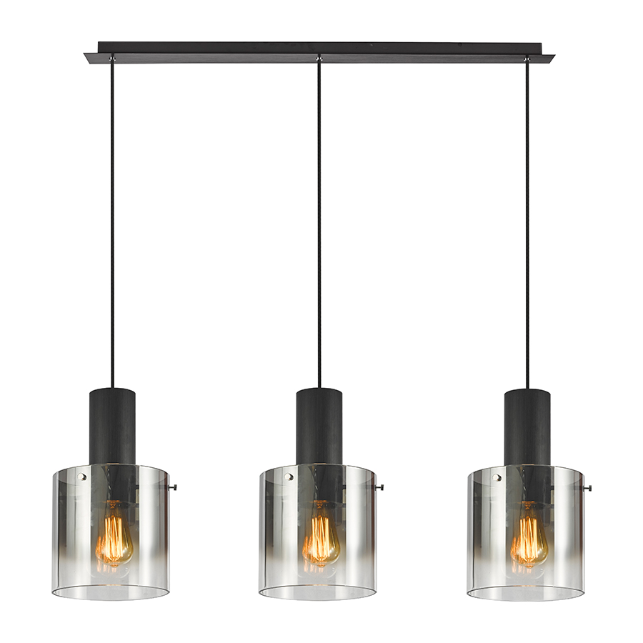 Τρίφωτη ράγα με χειροποίητο γυαλί χρώμιο ντεγκραντέ  και μέταλλο σε μαύρο χρώμα.Μήκος Ράγας: 90 εκ. Διάμετρος γυαλιού: 20 εκ.Ύψος: 150 εκ.Λαμπτήρες: 3 τεμ. Τύπος Λαμπτήρα: Ε27 Watt: 60