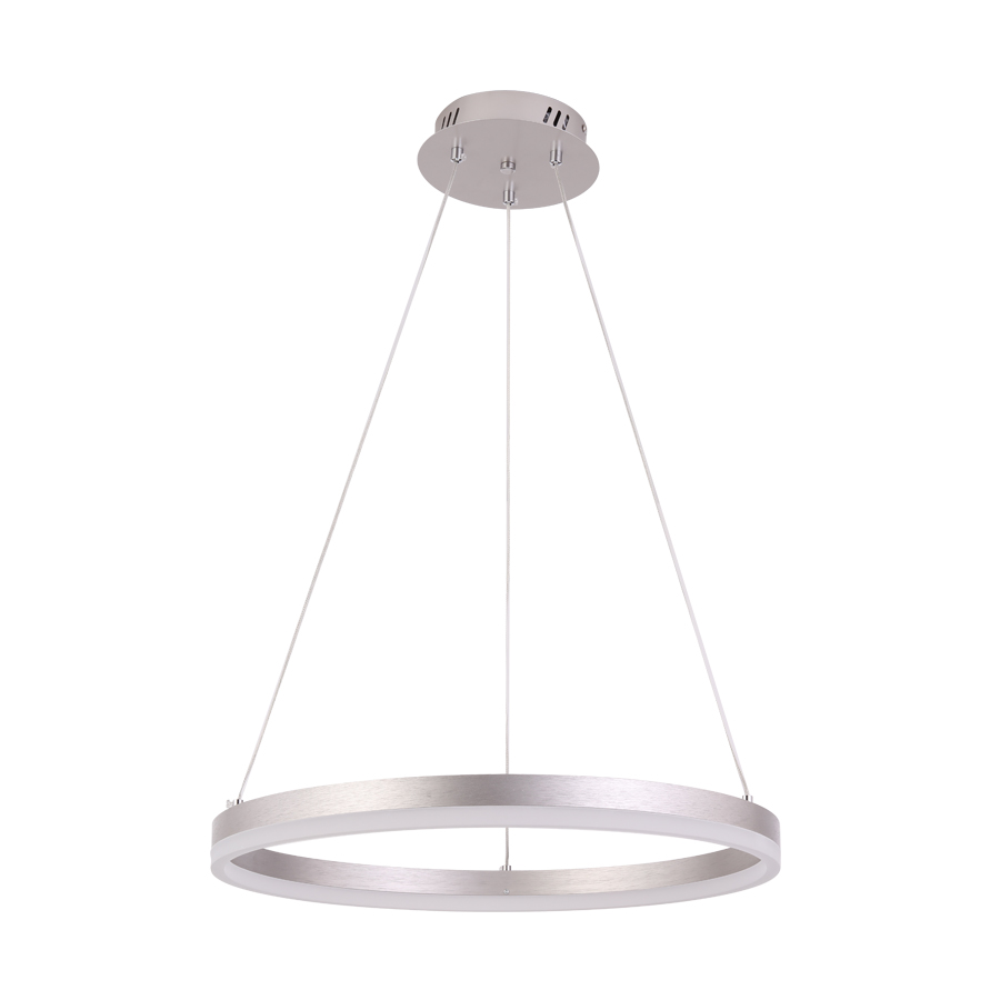 Κρεμαστό  μονόφωτο κατασκευασμένο από αλουμίνιο και μέταλλο σε ασημί χρώμα και ακρυλικό . Με δυνατότητα εναλλαγής θερμοκρασίας φωτισμού(3000k-6000k) , dimmer , τηλεκοντρόλ και night mode.Ύψος: 100 εκ. Διάμετρος: 51 εκ.Τύπος Λαμπτήρα: LED SMD Watt: 32w 3000k , 32w 6000k , 50w 4000k