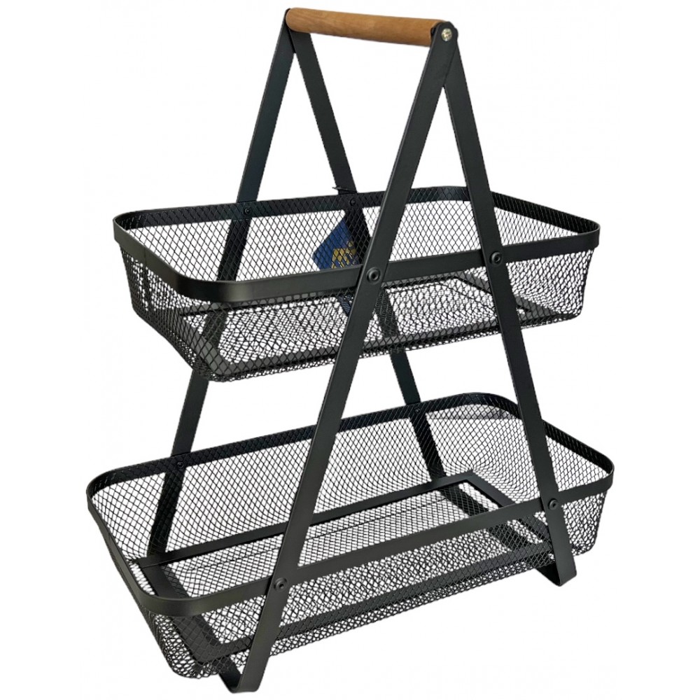 Ραφιέρα/φρουτιερα τακτοποίησης μεταλλική διώροφη σε μαύρο χρώμα 35x17x38cm | Crystal