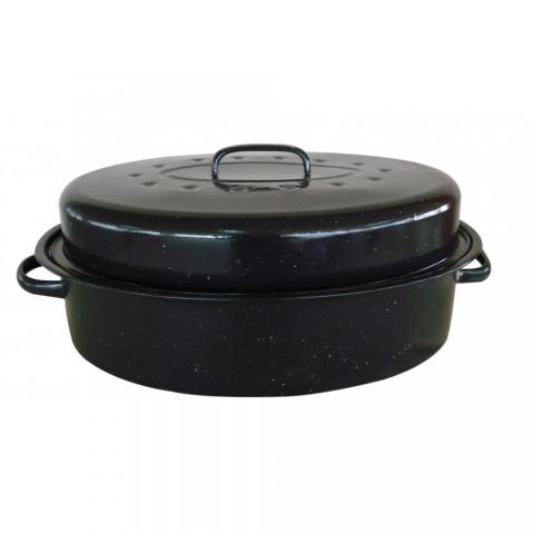 Γάστρα φούρνου οβάλ με εμαγιέ αντικολλητική επίστρωση, καπάκι και σχάρα, άριστης ποιότητας, ιδανική για χρήση σε υψηλές θερμοκρασίες. Διανέμει ομοιόμορφα την θερμότητα κατά το ψήσιμο και έχει εξαιρετική ανθεκτικότητα. Ασφαλής η χρήση σε πλυντήριο πιάτων.