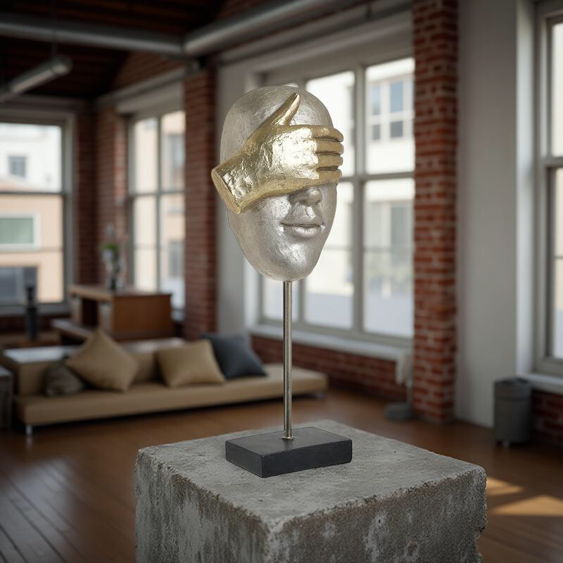 ΔΙΑΚΟΣΜΗΤΙΚΟ ΠΡΟΣΩΠΟ ΜΕ ΜΕΤΑΛΛΙΚΗ ΒΑΣΗ RESIN ΧΡΥΣΟ ΜΑΥΡΟ 19Χ14Χ48ΕΚ