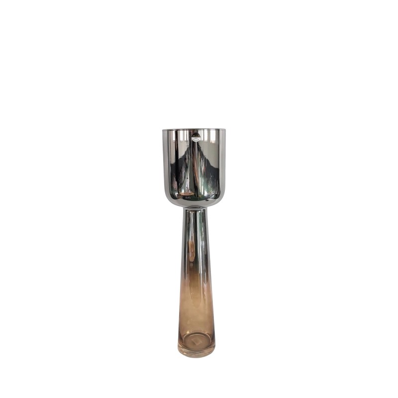 Διακοσμητικό γυάλινο κηροπήγιο ασημί/μελί 15.2x15.2x58cm 3/CSC575G-58 | Crystal