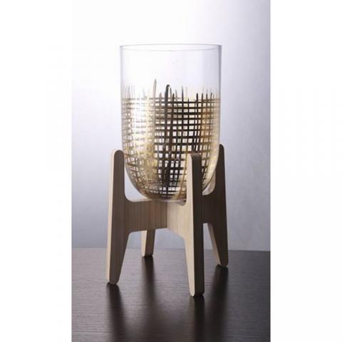 ΒΑΖΟ ΓΥΑΛΙΝΟ ΧΕΙΡΟΠΟΙΗΤΟ ΧΡΥΣΕΣ ΓΡΑΜΜΕΣ ΞΥΛΙΝΗ ΒΑΣΗ 25Χ25Χ38ΕΚ 76199 ILIADIS | Crystal