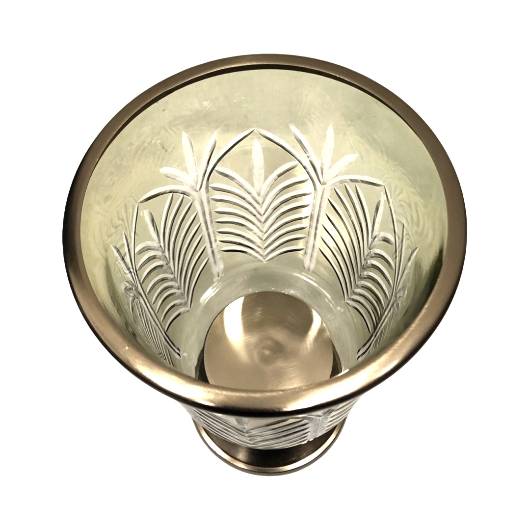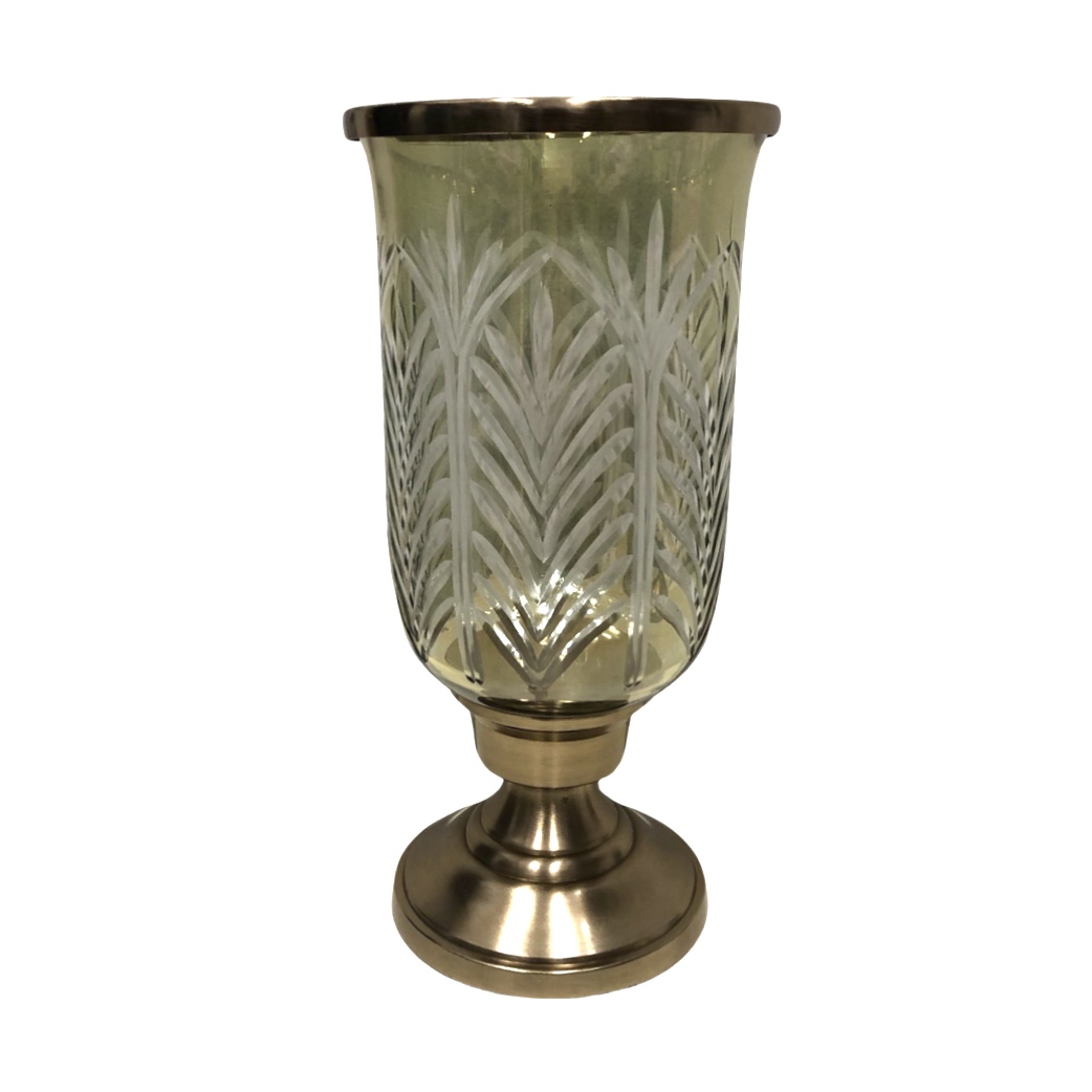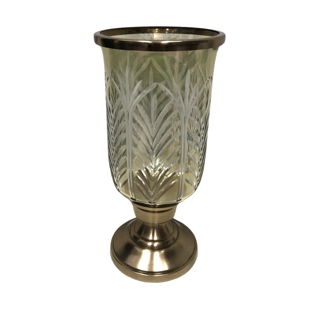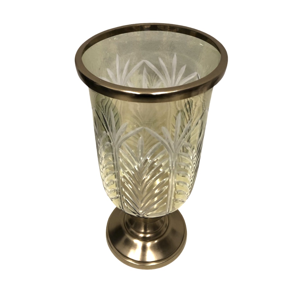 Διακοσμητικό Γυάλινο Μπρονζε/Μελί Βάζο & Μεταλλική ΜπρονζεΑντικέ Βάση 15.5x15.5x32cm | Crystal