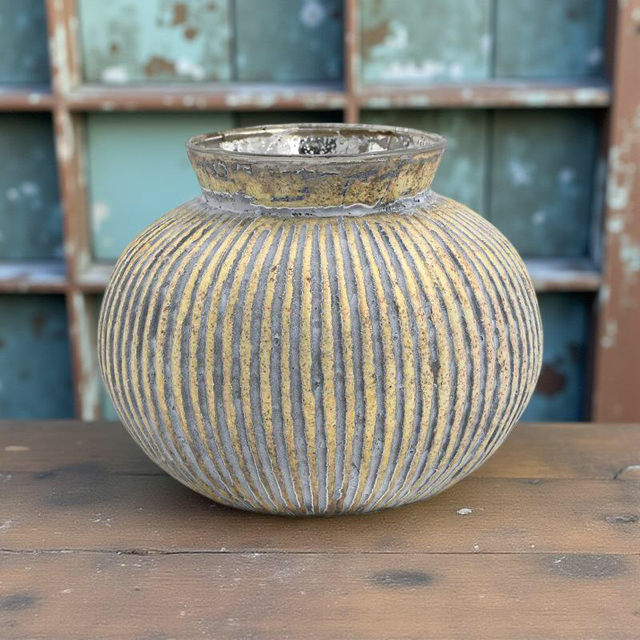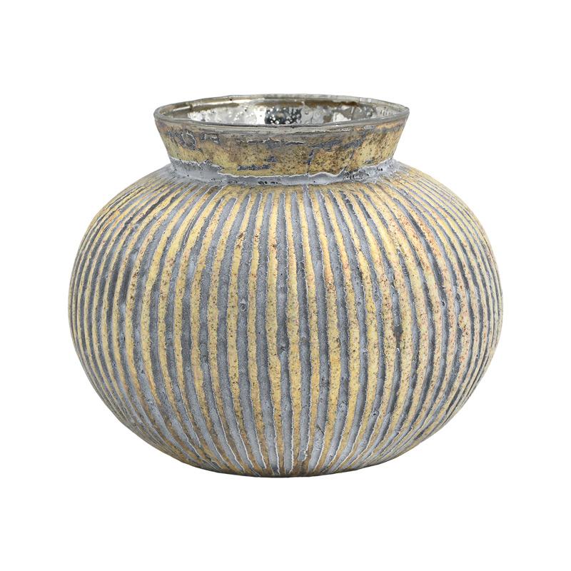 ΓΥΑΛΙΝΟ ΒΑΖΟ ΜΕΤΑΛΛΙΚΟ ΦΙΝΙΡΙΣΜΑ ΓΚΡΙ ΧΡΥΣΟ ΑΝΤΙΚΕ 16x13εκ 962-225-007