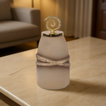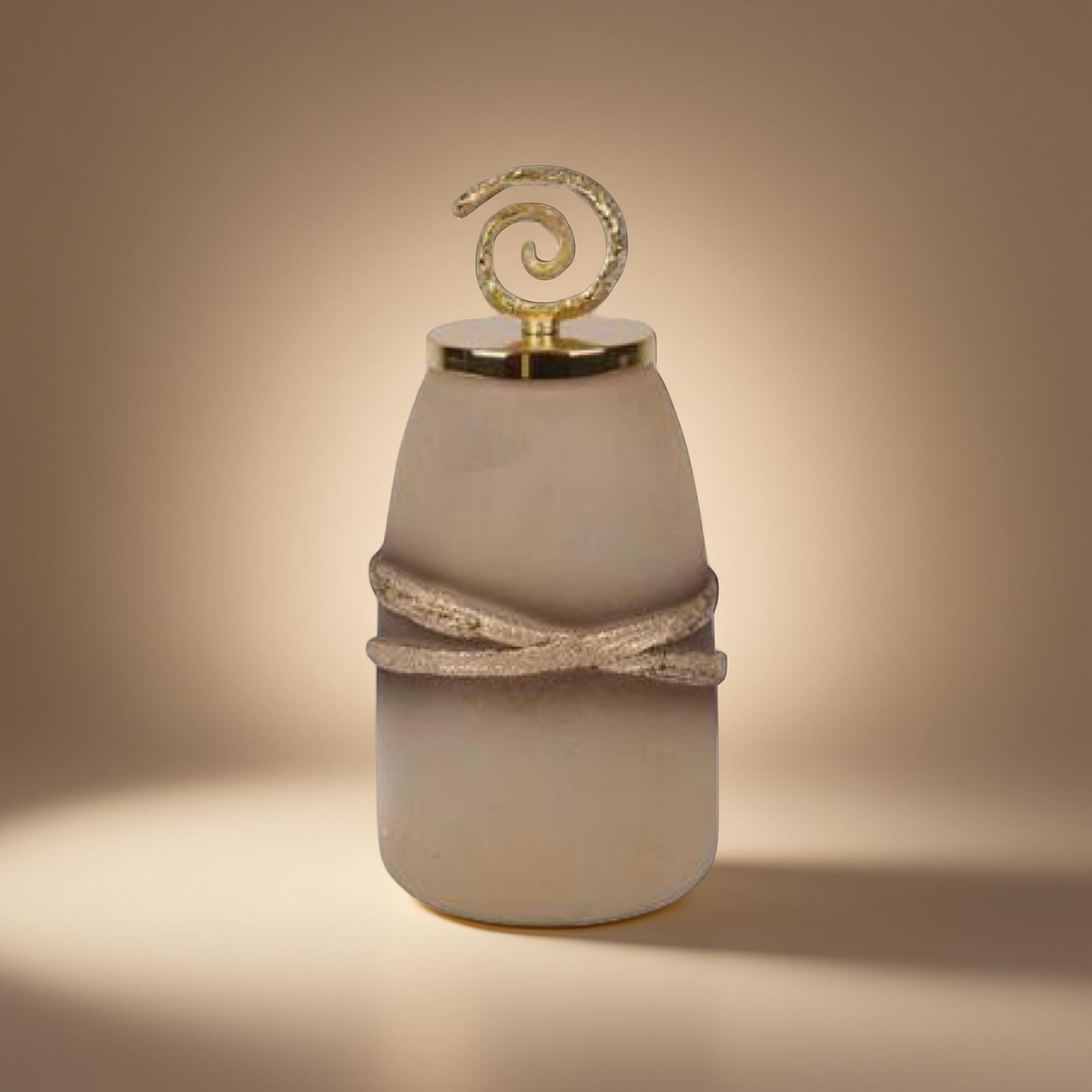 ΧΕΙΡΟΠΟΙΗΤΟ ΔΟΧΕΙΟ MURANO ΓΥΑΛΙΝΟ ΜΕ ΚΑΠΑΚΙ ΣΦΥΡΗΛΑΤΟ ΜΕΤΑΛΛΙΚΟ ΧΡΥΣΟ ΜΠΕΖ-ΧΡΥΣΟ 9x9x23cm | Crystal