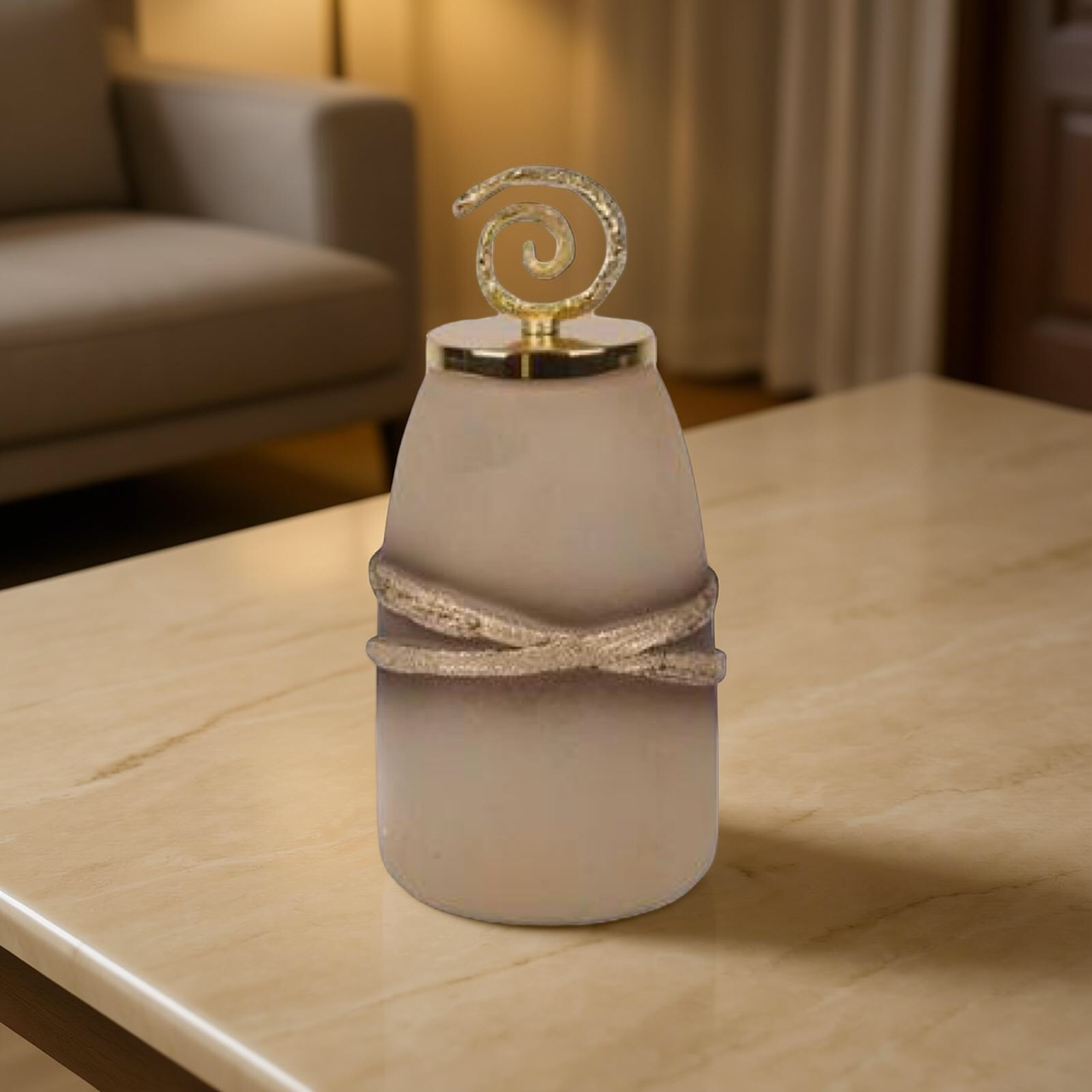 ΧΕΙΡΟΠΟΙΗΤΟ ΔΟΧΕΙΟ MURANO ΓΥΑΛΙΝΟ ΜΕ ΚΑΠΑΚΙ ΣΦΥΡΗΛΑΤΟ ΜΕΤΑΛΛΙΚΟ ΧΡΥΣΟ ΜΠΕΖ-ΧΡΥΣΟ 9x9x23cm