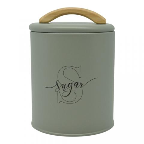 Βάζο μεταλλικό σε λαδί ματ χρώμα με ξύλινη χειρολαβή και διακριτική επιγραφή Sugar. Συνδυάστε το με τα υπόλοιπα αντικείμενα της σειράς και ανανεώστε τον χώρο σας.