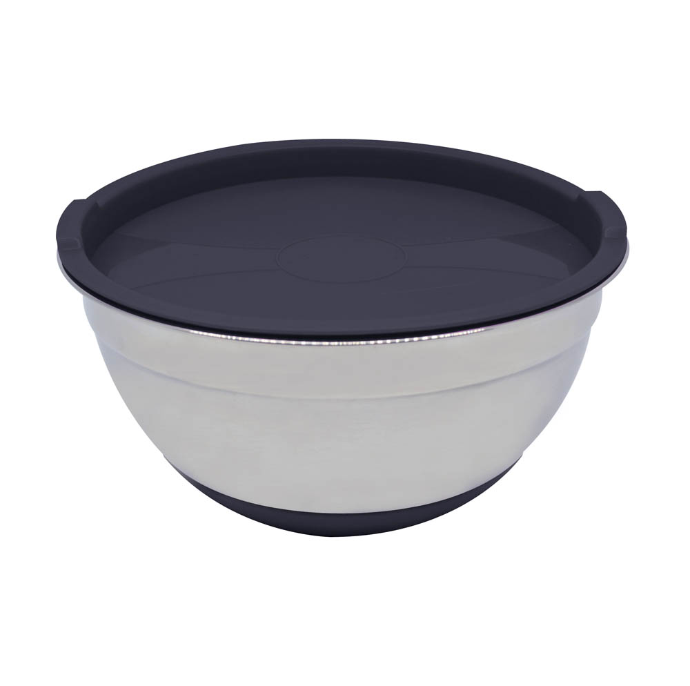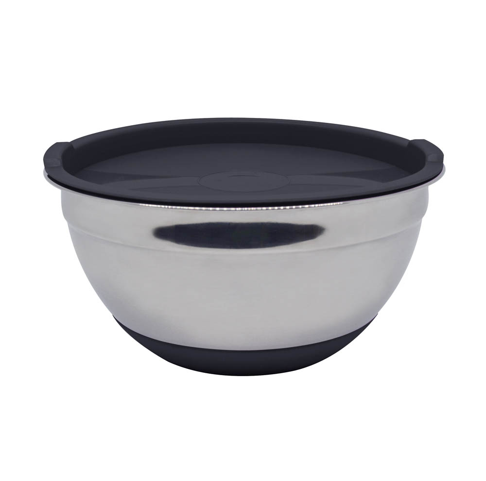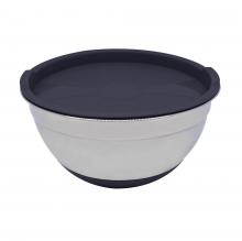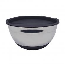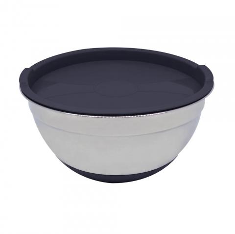 Μπολ ανοξείδωτο στρογγυλό, με μαύρο πλαστικό καπάκι και σιλικόνη στο κάτω μέρος για μεγαλύτερη σταθερότητα.Εκτός από την αποθήκευση τροφίμων μπορεί να χρησιμοποιηθεί και για μπολ σερβιρίσματος ή για κάδο σε ηλεκτρικό μίξερ.