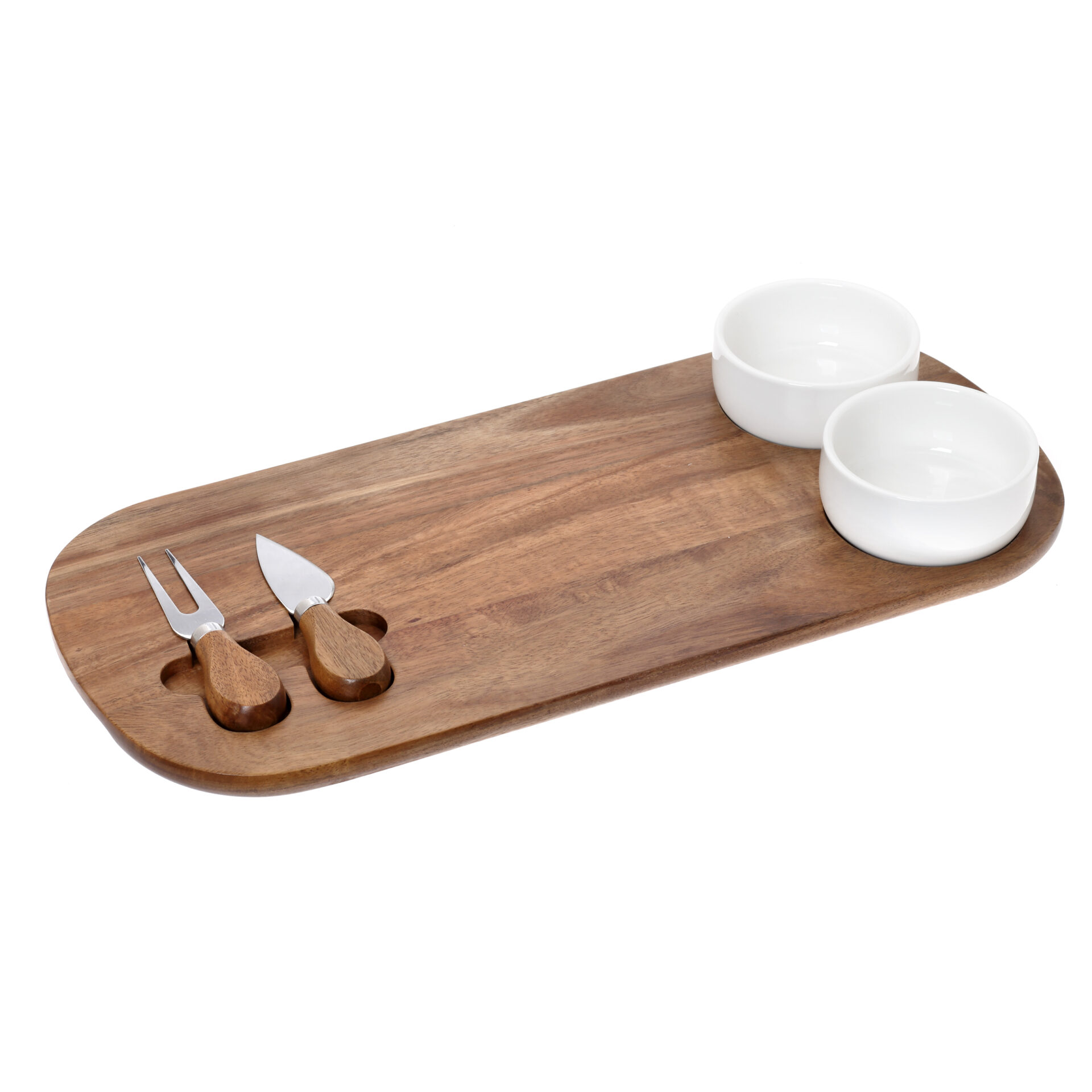 HFA Ξύλινο Πλατό Gourmet Με 2 Μπολ Πορσελάνης + 2 Μαχαίρια 5460025