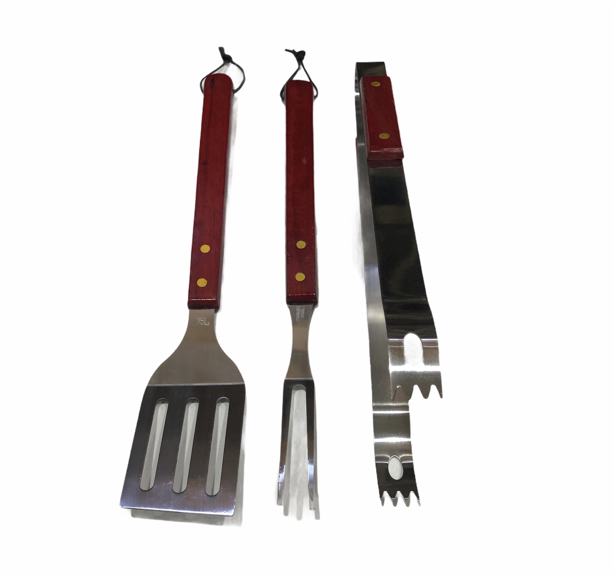 ΣΕΤ 3 ΤΕΜΑΧΙΩΝ ΕΡΓΑΛΕΙΑ BBQ INOX ΜΕ ΞΥΛΙΝΕΣ ΛΑΒΕΣ | Crystal