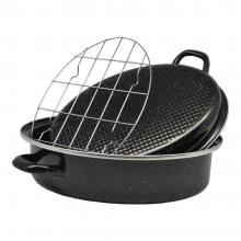 Γάστρα φούρνου βαρέως τύπου,με εμαγιέ αντικολλητική επίστρωση,καπάκι κ σχάρα,άριστης ποιότητας,ιδανική για χρήση σε υψηλές θερμοκρασίες.Διανέμει ομοιόμορφα την θερμότητα κατά το ψήσιμο κ έχει εξαιρετική ανθεκτικότητα.Ασφαλής η χρήση σε πλυντήριο πιάτων.