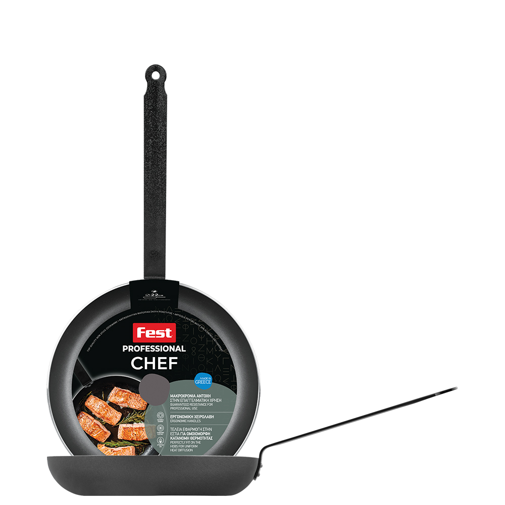 Οδηγίες Χρήσης: 1. Πριν την πρώτη χρήση, πλύνετε το σκεύος με ζεστό νερό και αλείψτε το εσωτερικό του με λάδι ή βούτυρο.2. Μην υπερθεμαίνετε το σκεύος όταν είναι άδειο.3. Μαγειρεύετε σε μέτρια θερμοκρασία.4. Μην κόβετε ποτέ μέσα στο σκεύος με αιχμηρά εργαλεία5. Για τον καθαρισμό του σκεύους χρησιμοποιείτε ζεστό νερό, υγρό πιάτων και μαλακό σφουγγάρι6. Το πλύσιμο στο πλυντήριο πιάτων δεν μειώνει τις αντικολλητικές ιδιότητες του σκεύους.7. Η αντικολλητική επικάλυψη είναι σύμφωνη με τον κανονισμό για υλικά που έρχονται σε επαφή με τρόφιμα. Διαστάσεις: Υ5 εκΔιάμετρος: 22 εκΧρώμα: Γκρι ΣκούροΥλικό: ΑλουμίνιοΧώρα Προέλευσης: ΕλλάδαΚωδ. Προϊόντος: 0061821