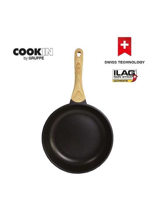 Θέλετε να ετοιμάσετε Κινέζικο ή Μεξικάνικο ή Ιταλικό ή κάτι παραδοσιακό? Με τη νέα σειρά μαγειρικών σκευών COOKIN by Gruppe θα ετοιμάσετε γευστικές επιλογές από όλο τον κόσμο, και θα μαγειρεύετε… χωρίς κολλήματα!Τα αντικολλητικά σκεύη COOKIN by Gruppe έχουν χαρακτηριστική εργονομική χειρολαβή από βακελίτη με ξύλινη βαφή μαλακής αφής (wood), που τα κάνουν ακόμα πιο ελκυστικά (εκτός από αυτό με την αποσπώμενη λαβή).H ειδική σχεδίαση στην ένωση της λαβής με το κυρίως σώμα του σκεύους, εγγυάται ακόμα μεγαλύτερη αντοχή στη χρήση.Σε συνεργασία με την πρωτοπόρο ελβετική εταιρία ILAG, που ειδικεύεται στην παραγωγή αντικολλητικού υλικού, η εταιρία Gruppe έχει επιλέξει για τα προϊόντα COOKIN by Gruppe να χρησιμοποιήσει την ULTIMATE σειρά τριπλής αντικολλητικής επίστρωσης. Η συγκεκριμένη κορυφαία σειρά της ILAG, έχει εξαιρετικές αντικολλητικές ιδιότητες, πρωτοφανή αντοχή, υψηλή προστασία από τις γρατζουνιές και εξαιρετική αντίσταση τριβής, ιδανικά για υγιεινό μαγείρεμα. Δεν περιέχουν PFOA.Για να διατηρήσετε σε καλή κατάσταση την αντικολλητική επίστρωση που διαθέτει, σας συμβουλεύουμε να αφήνετε το σκεύος να κρυώσει πριν το καθαρίσετε και να αποφεύγετε το σύρμα καθαρισμού. Προτιμήστε ένα μαλακό, συνθετικό σφουγγάρι.