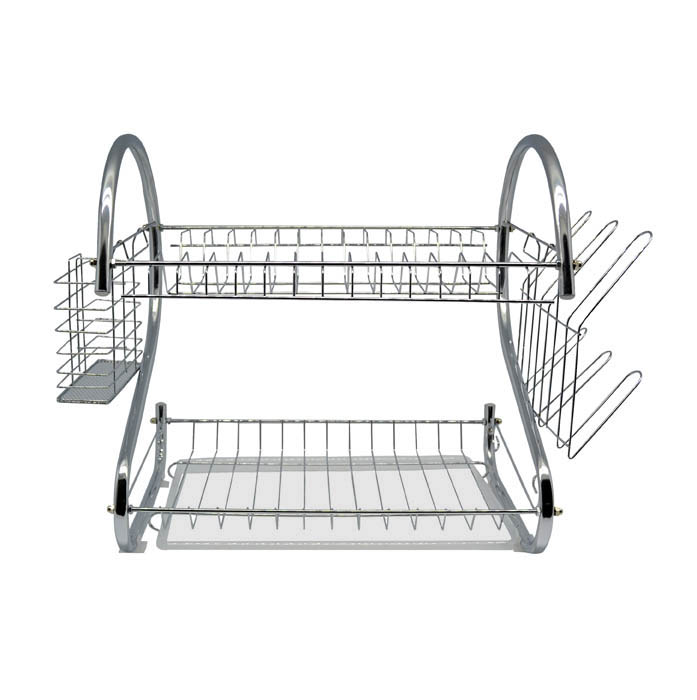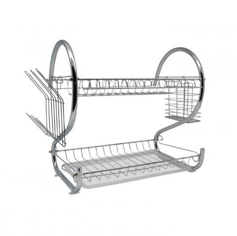 Διώροφη πιατοθήκη μεταλλική με θήκη για τα μαχαιροπίρουνα, ποτηροθήκες και δίσκο σε άσπρο χρώμα