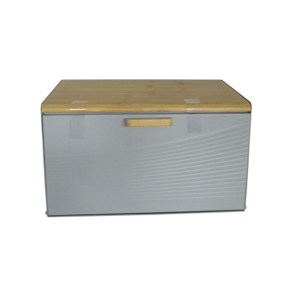 Ψωμιέρα μεταλλική γκρι ανοιχτο με καπάκι bamboo 36Χ21,6Χ20,4εκ. Κωδικός:5460934 | Crystal