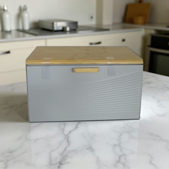 Ψωμιέρα μεταλλική γκρι ανοιχτο με καπάκι bamboo 36Χ21,6Χ20,4εκ. Κωδικός:5460934