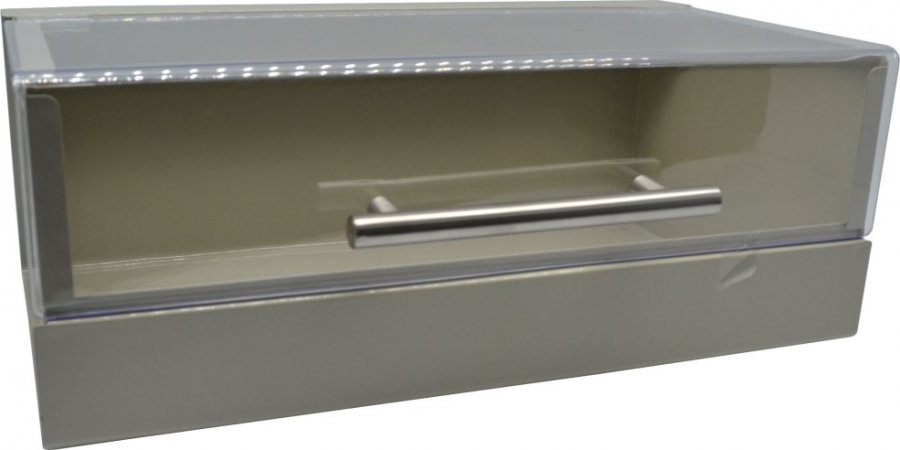 Ψωμιέρα μεταλλική σε μπεζ γκρί χρώμα και διάφανο ακρυλικό κάλυμμα | Crystal