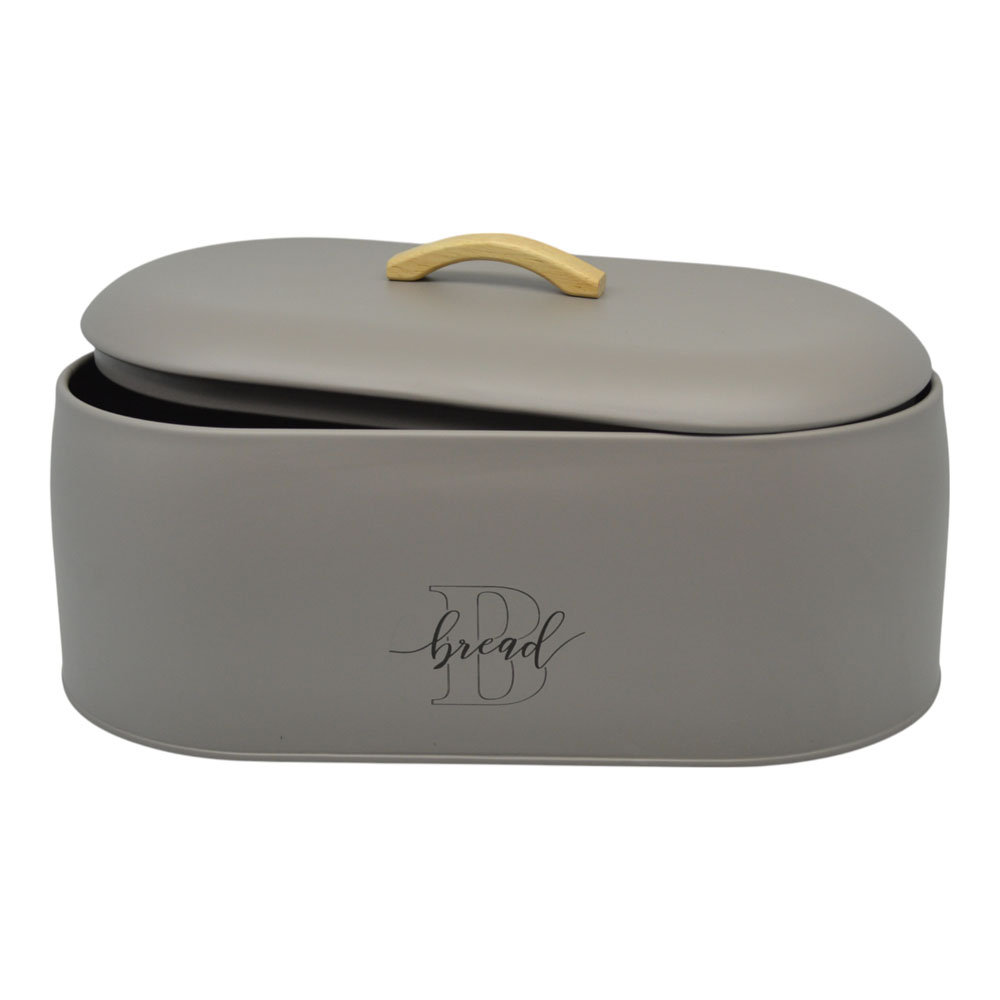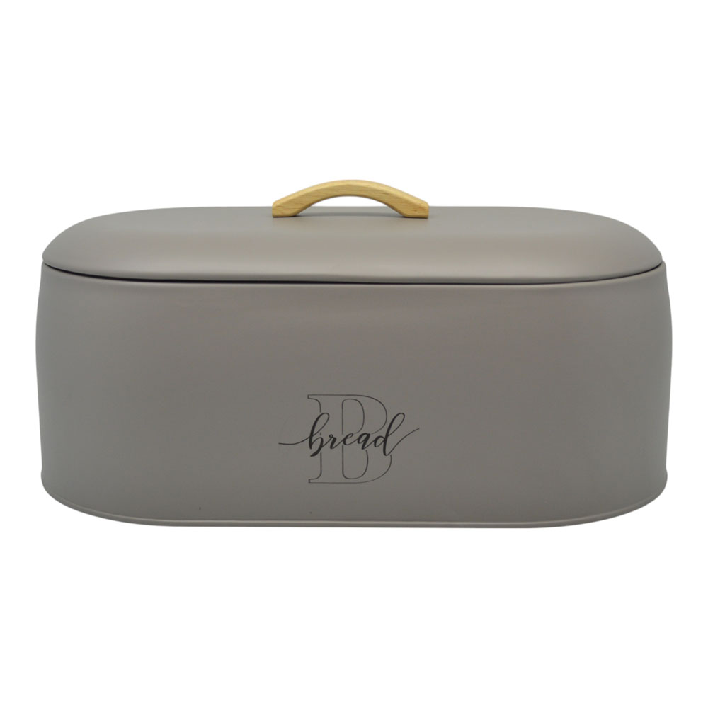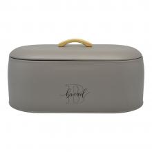 Μεταλλική ψωμιέρα σε taupe ματ χρώμα με ξύλινη χειρολαβή και διακριτική επιγραφή Bread. Ιδανική για την αποθήκευση ψωμιού και αρτοσκευασμάτων, τα διατηρεί φρέσκα, προστατεύοντάς τα από την υγρασία.