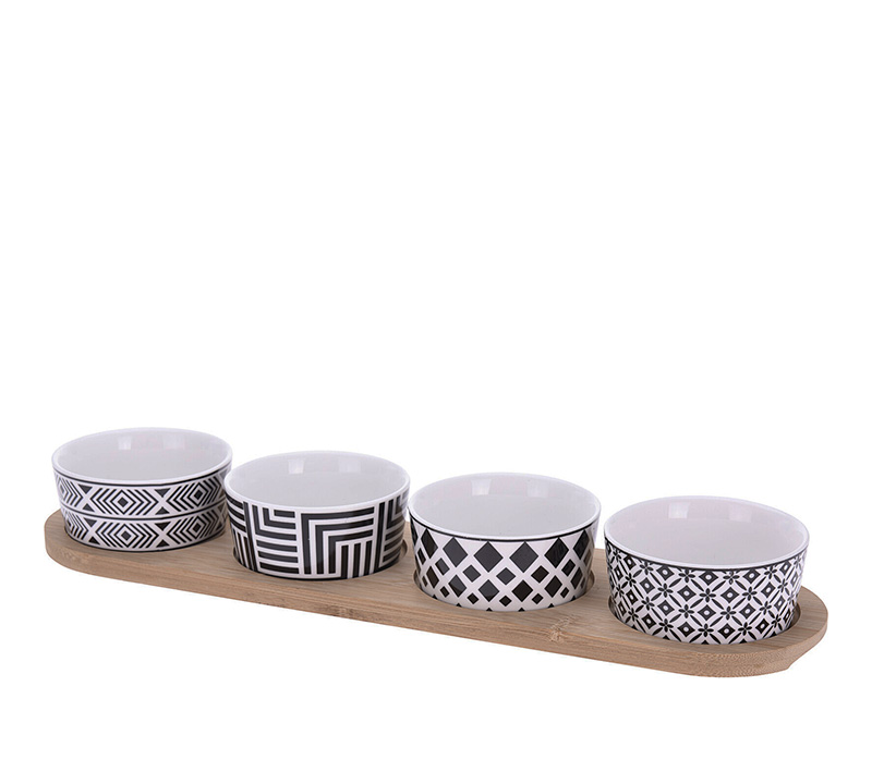 Ορντεβίερα με 4 κεραμικά μπολ, βάση bamboo 38x10cm | ZAROS | Crystal
