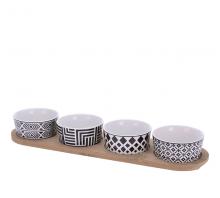 Ορντεβίερα με 4 κεραμικά μπολ, βάση bamboo 38x10cm | ZAROS
