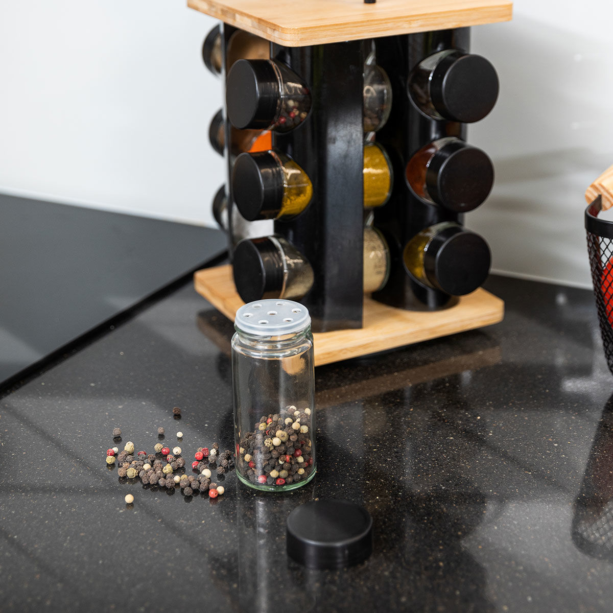 ΒΑΣΗ ΜΠΑΧΑΡΙΚΩΝ BAMBOO ESSENTIALS ΜΕ 12 ΓΥΑΛΙΝΑ ΔΟΧΕΙΑ ΠΕΡΙΣΤΡΕΦΟΜΕΝΗ ΜΑΥΡΗ 01-14650 | Crystal