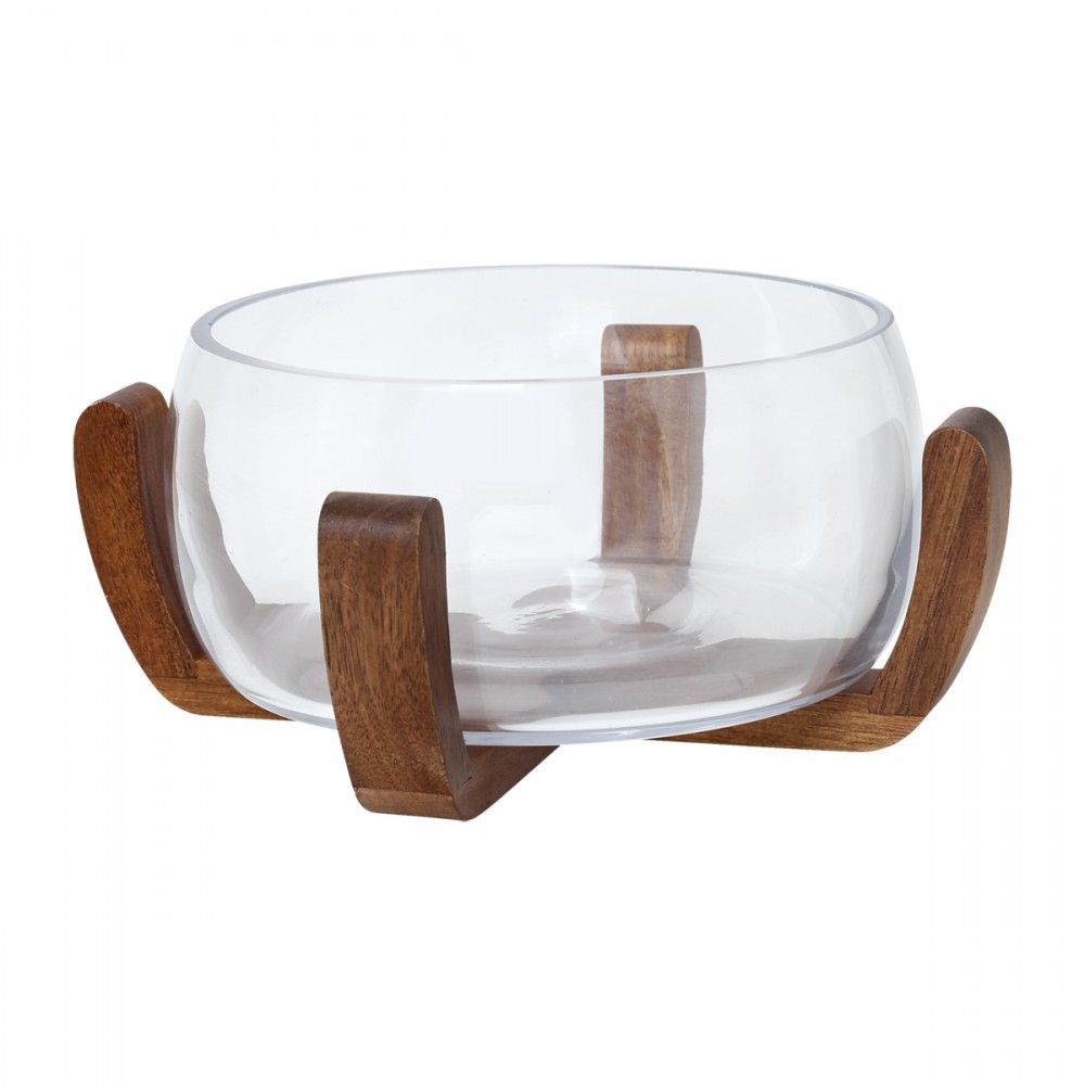 Σαλατιέρα Γυάλινη Με Ξύλινη Βάση, 22x11 εκ. Acacia, 65.000.221, CRYSPO TRIO