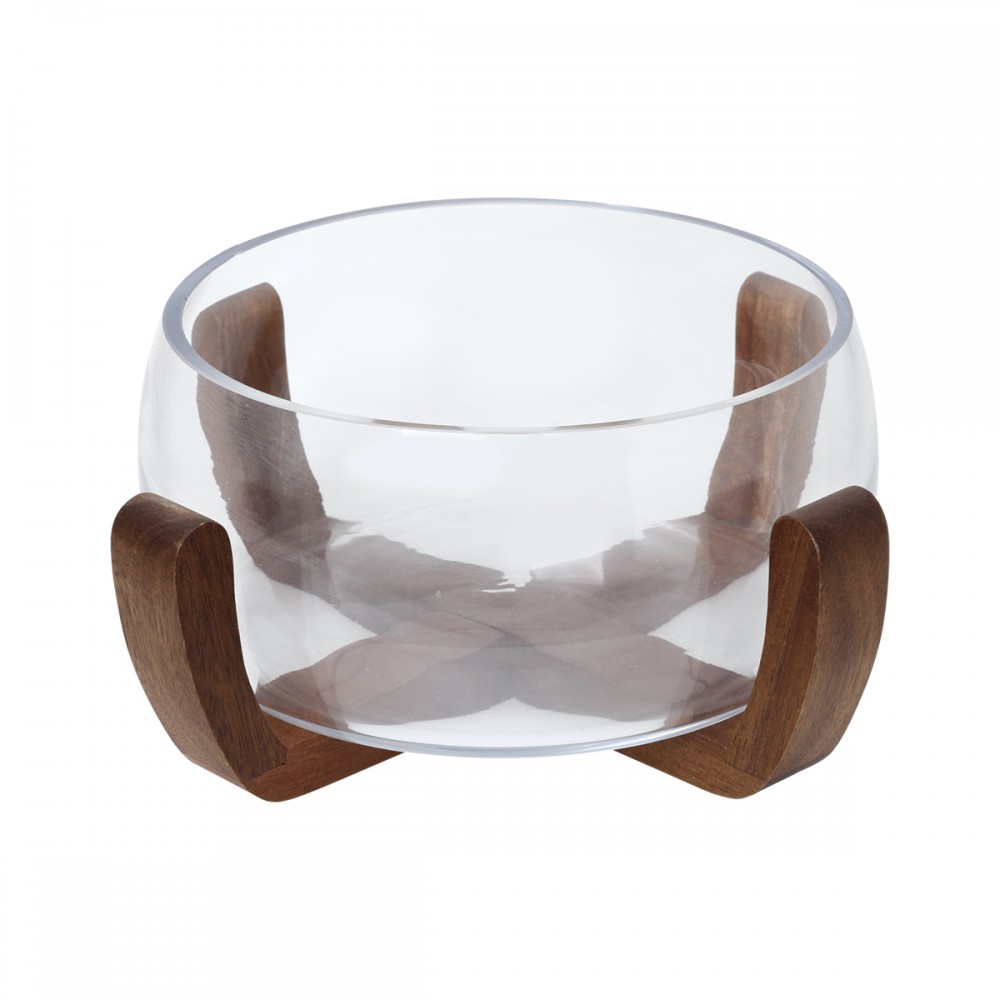 Σαλατιέρα γυάλινη  σε ξύλινη βάση από τη σειρά Acacia της Cryspo Trio.Διαστάσεις: 22x11εκ.
